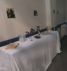 Dans cette aventure il est indispensable de consacrer une partie du CDI ou une petite salle attenante à ce jeu. J’ai la chance d’avoir trois petites salles vitrées dont une sera mobilisée pour l’installation d’un décor. Pour les élèves, la décoration est l’étape la plus amusante. Chercher des objets en rapport avec le thème choisi, c’est l’occasion aussi de réfléchir aux signes récurrents d’une maison hantée. Le décor à mettre en place ne coûte pas cherm: il suffit de récupérer du matériel dans son entourage, chez soi, dans la famille, auprès des enseignants. Ils ont joué le jeu en apportant des objets, semaine après semaine, consciencieusement.